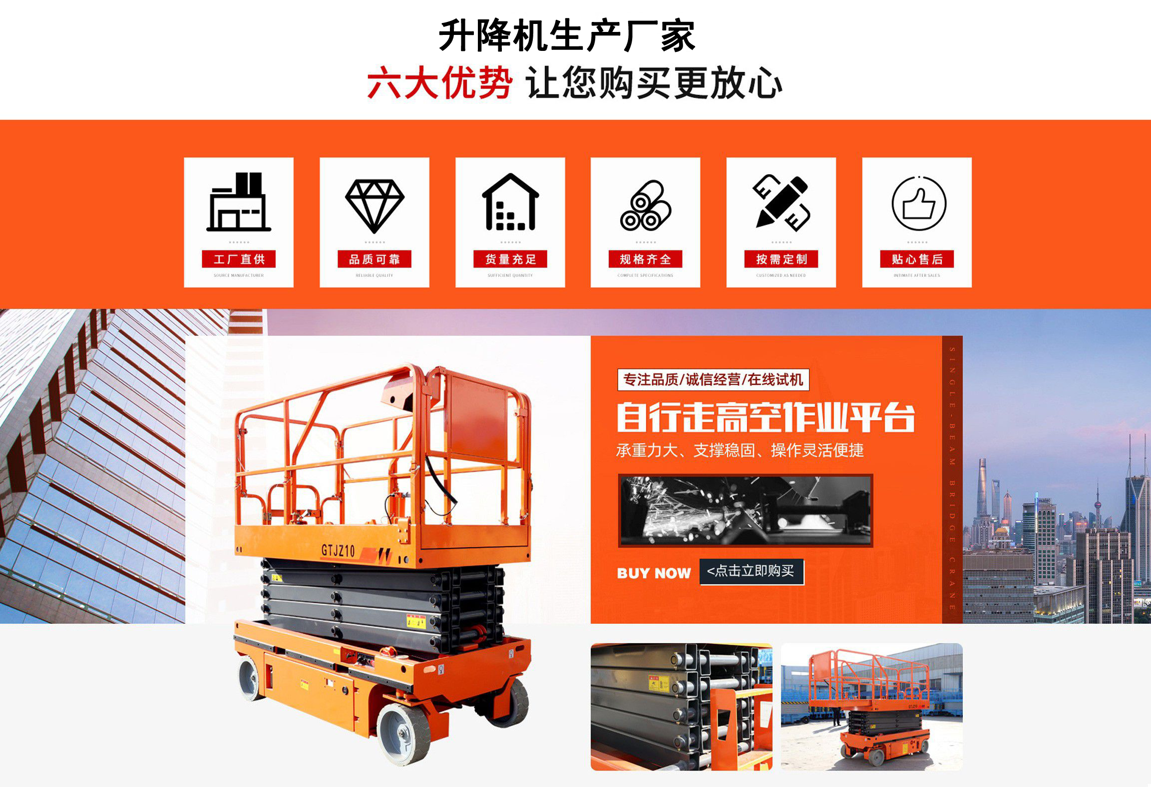 升降機生產(chǎn)廠家是專業(yè)從事升降平臺,液壓貨梯,卸豬臺,平板拖車,液壓提升機,移動式升降機,升降平臺車,高空作業(yè)設(shè)備,貨梯廠家,液壓登車橋等升降機械產(chǎn)品制造十余年,服務(wù)過各大國內(nèi)外企業(yè)。 自公司創(chuàng)立以來,經(jīng)過長期對液壓升降臺的研制和探索,積累了豐富的專業(yè)制造技術(shù)和寶貴經(jīng)驗。憑借豐富的專業(yè)技術(shù)及不斷開拓創(chuàng)新的精神,現(xiàn)已成為專業(yè)于升降機械的公司。 長期以來,憑借公司不斷的壯大及對液壓技術(shù)的不斷改進和探索。能根據(jù)客戶不同的要求設(shè)計一套合理、完善的方案供客戶參考。現(xiàn)有產(chǎn)品:升降平臺,液壓貨梯,卸豬臺,平板拖車,液壓提升機,移動式升降機,升降平臺車,高空作業(yè)設(shè)備,貨梯廠家,液壓登車橋等。本產(chǎn)品在各類工礦企業(yè)、港口物流以及其它領(lǐng)域均發(fā)揮著重要的作用。始終以“以信譽求生存、以技術(shù)求發(fā)展”為本廠的經(jīng)營理念。只要你選購我廠的產(chǎn)品,無論你身在何方都能得到我們迅捷優(yōu)良的服務(wù)。 公司自成立已經(jīng)來本著"團結(jié)、求實、創(chuàng)新、互贏"的理念,以先進的技術(shù)和服務(wù),為客戶建造滿意的產(chǎn)品。幾年來受到廣大客戶的好評。...